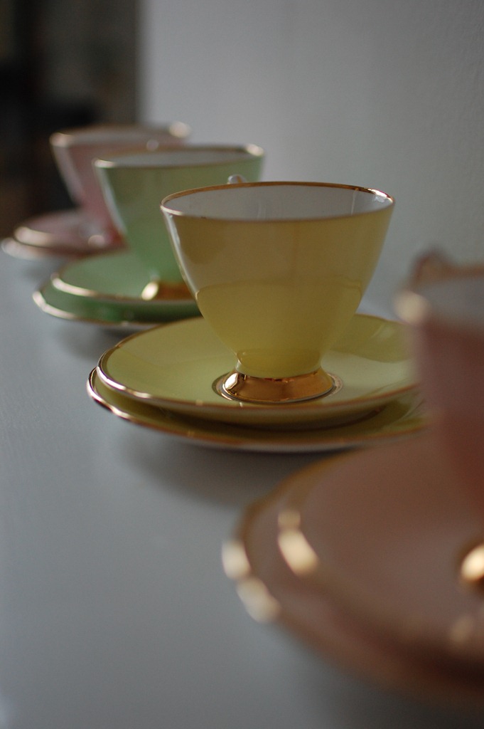 A blue cup was missing – but that’s OK, a little more plundering and I will get one to fill the gap! The pink set also came with cutest little spoon, so the hunt is on to find matching ones for the other sets!