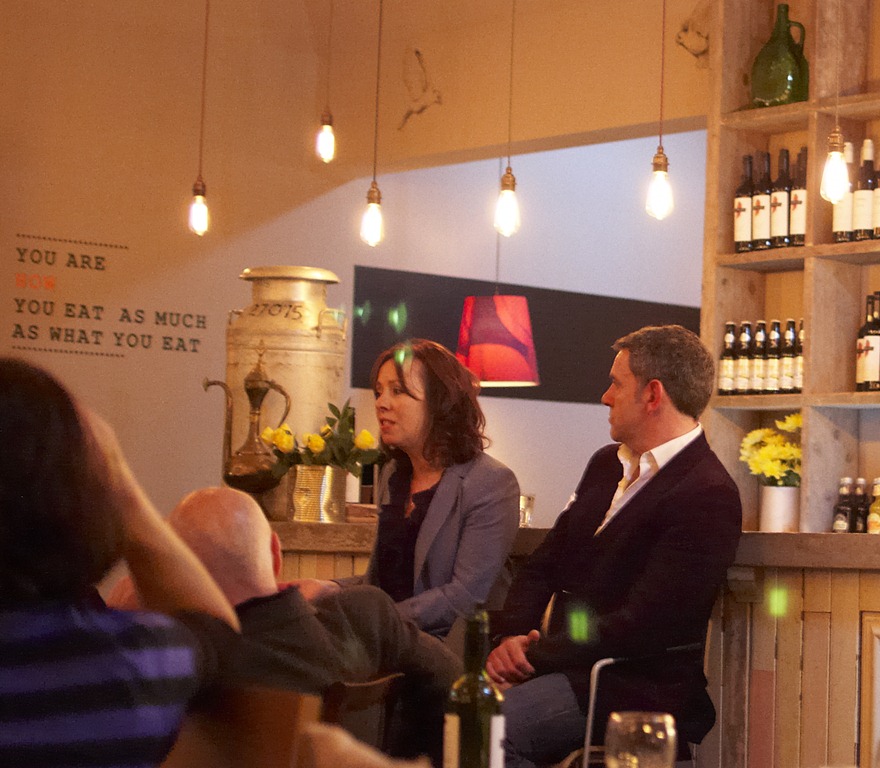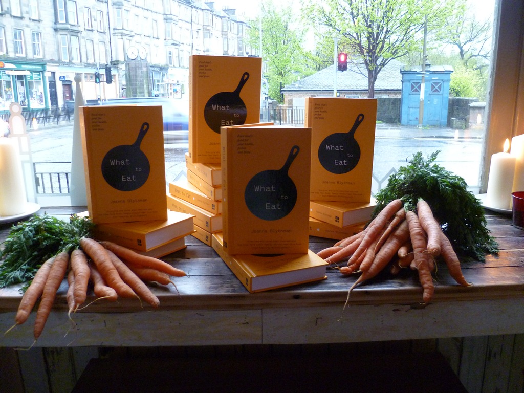 Last Tuesday during a quiet moment at work – lets say lunchtime… I had a wee flick through twitter to see what was going on in the world, when I noticed someone had re-tweeted Taste Communications tweet about a 2 course supper with Joanna Blythman who has just launched her new book – What to Eat. Even better, this was to be held at Earthy Foods at Canonmills on Thursday evening – a mere saunter from our flat. It was a no brainer. A covert operation ensued, as I snuck into a meeting room, phoned Earthy and in a hushed voiced ordered 2 tickets for Stuart and I, casually returning to my desk as if i was up to nothing.