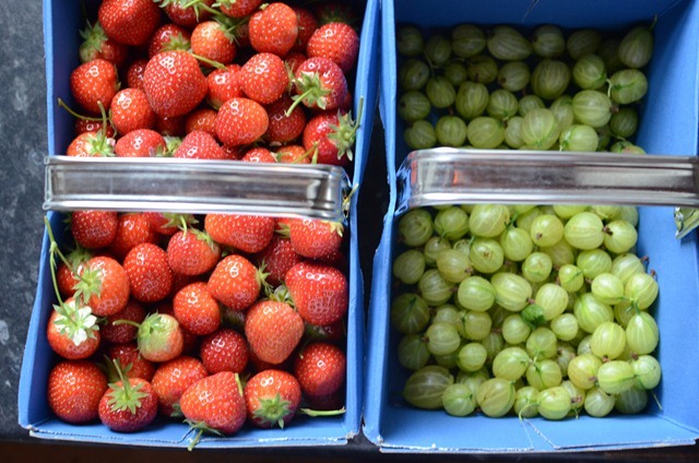 There was a small section of gooseberries, but the bushes were plentiful and again I got a little carried away but not as bad as the Strawberries – only 1kg this time! We also passed blackcurrant and redcurrant bushes which both looked full of fruit, but since I already took 2kgs of blackcurrants from Stuart’s Dad, I don’t think I’ll be needing any for a while!