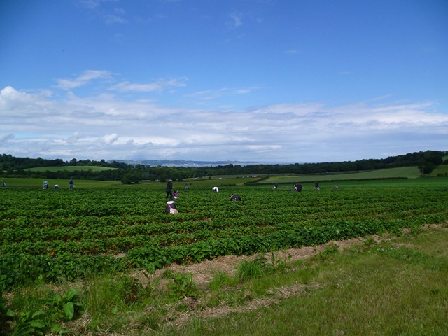 After lunch we picked up 2 large baskets (though stupidly didn’t ask how much each basket held!) and went off into the fields. The first section of strawberries seemed to have been affected by the weather and there weren’t as many pickable fruits, and a lot still to ripen. However the polytunnels at the end of the field were bounteous in supply, and I got a little carried away and picked nearly 3kgs as it turned out when we went to pay!