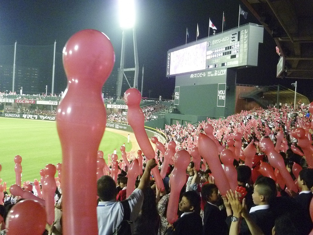 In Hiroshima we stayed near the station, up high on the 17th floor. While surveying the view over the city Stuart noticed a baseball stadium and people flocking towards it. So we went to check it out – and it was indeed a Hiroshima Carps game. Locals were heading into the local supermarket to buy provisions for the game, so we followed suit and stocked up on unknown Japanese snacks!