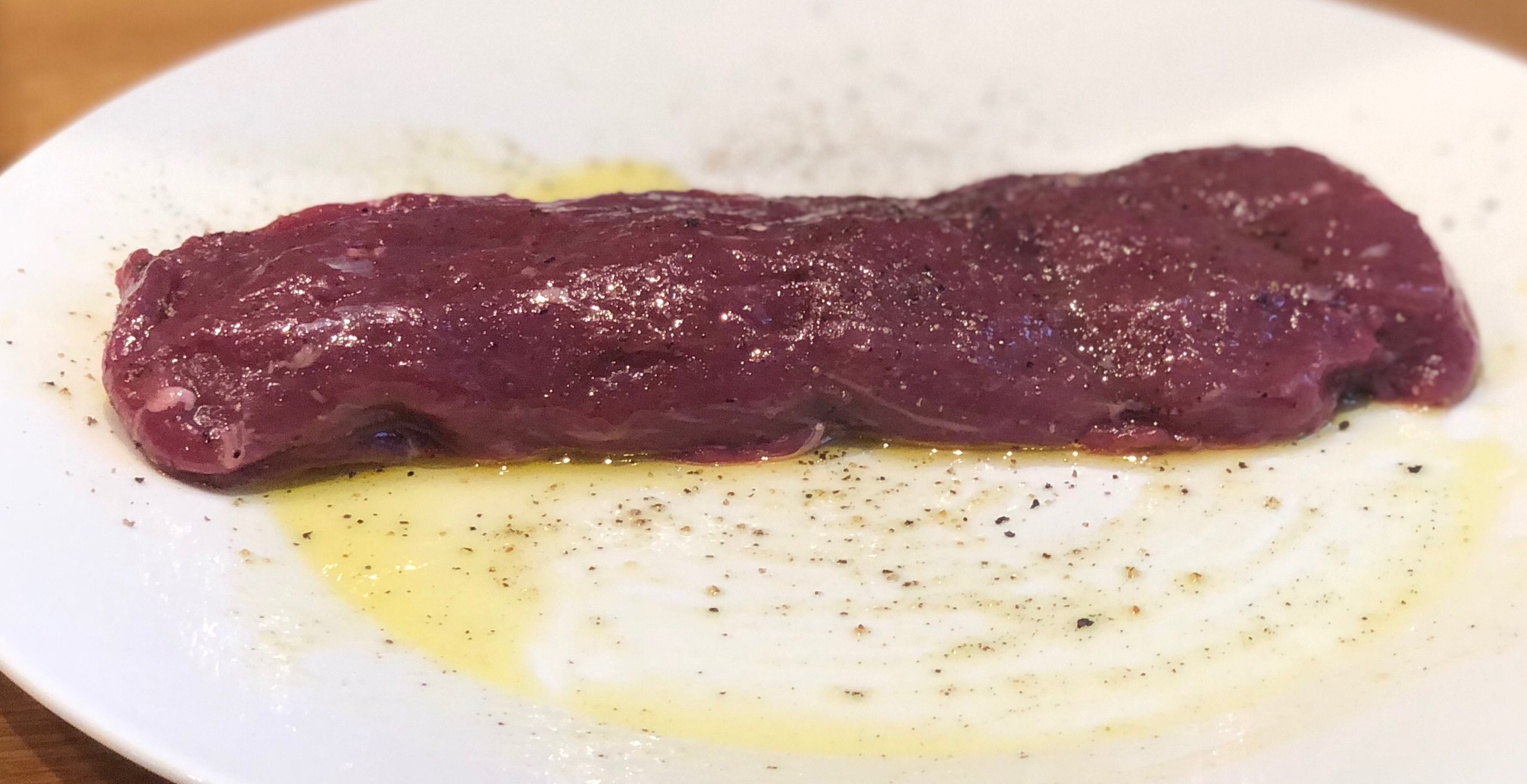 The class Stuart signed up for was their Meat Course, a day learning about cuts, butchery and cooking delicious dishes of what they have cut up! One dish they made was Venison Carpaccio, an easy dish which can be frozen, and as they were told could be used for an ’emergency’ starter! It’s simple and we have enjoyed it on a number of occasions.