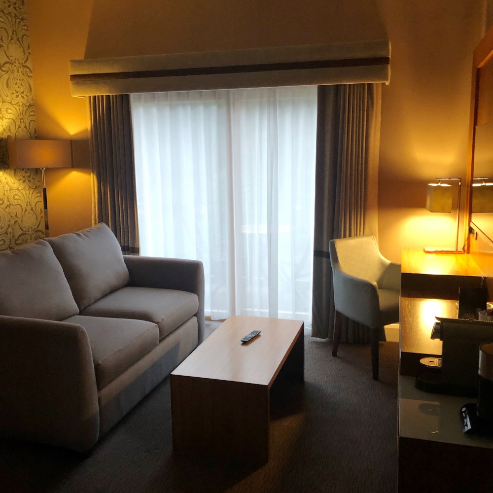 It was now time to check into the hotel, so we got changed and headed over. We were greeted with a warm welcome, an easy check-in and then a short tour of the hotel with the concierge who told us a brief history of the castle and showed us where everything was. We had booked a Woodland Suite, which was lovely. There was a separate bedroom and living room, as well as two bathrooms and balconies! Even though it had been raining we managed to sit outside and enjoy some fizz in fading light.