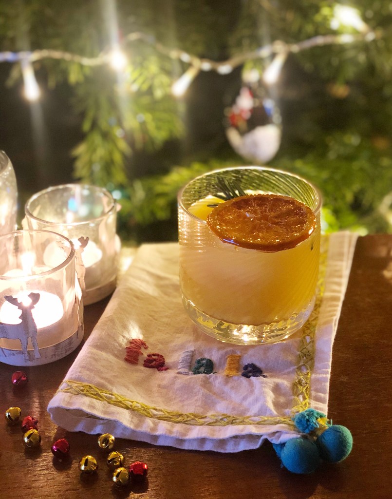 - Garnish with a cinnamon stick, rosemary and candied orange slice