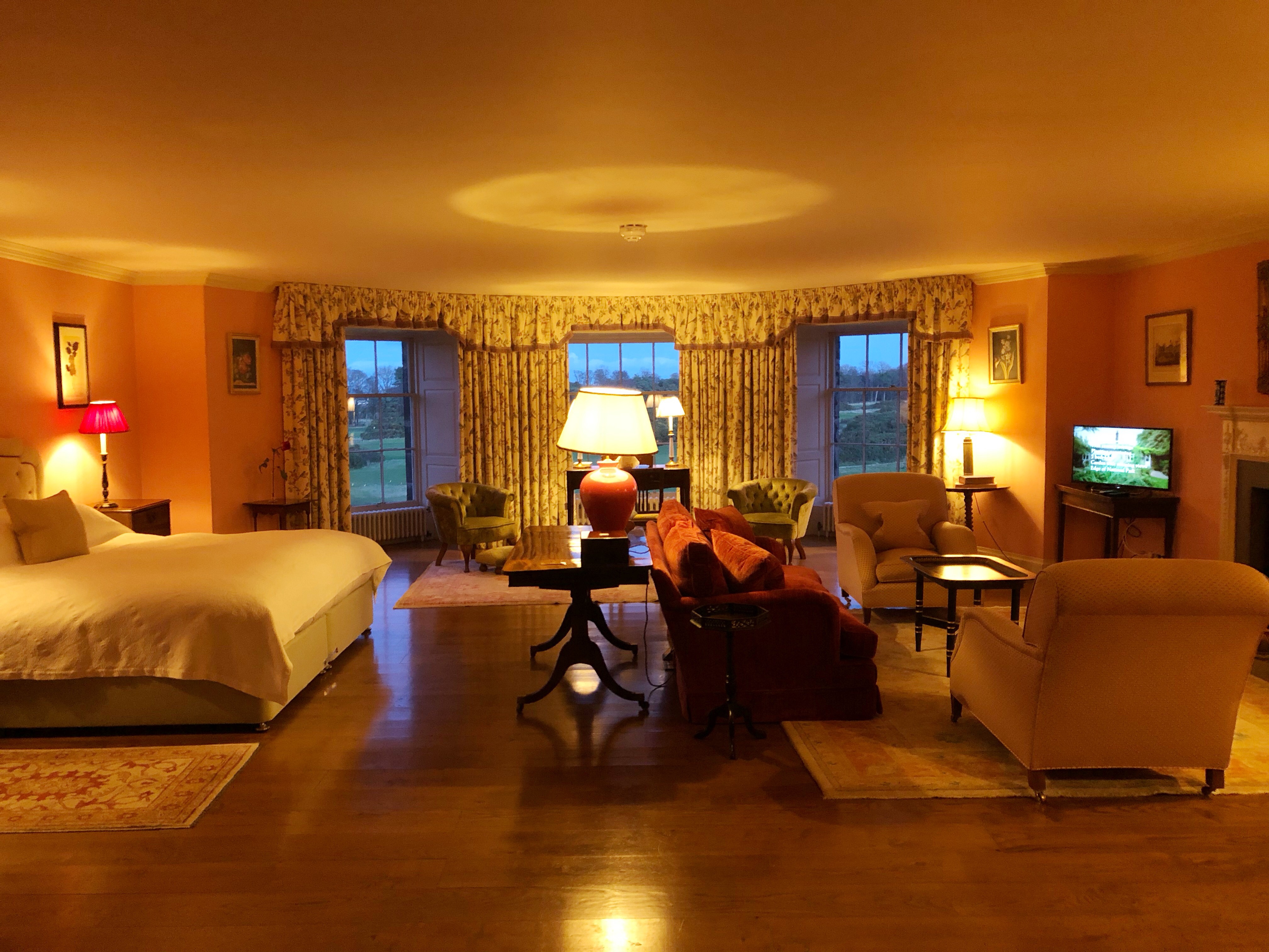 Since they couldn’t serve alcohol, we were able to take a bottle of wine to our room, and before we did that we had a quick nosey around the house! A lovely cosy looking drawing room, where I can imagine curling up and reading a book with a glass of wine, and a very ornate hallway on the first floor!