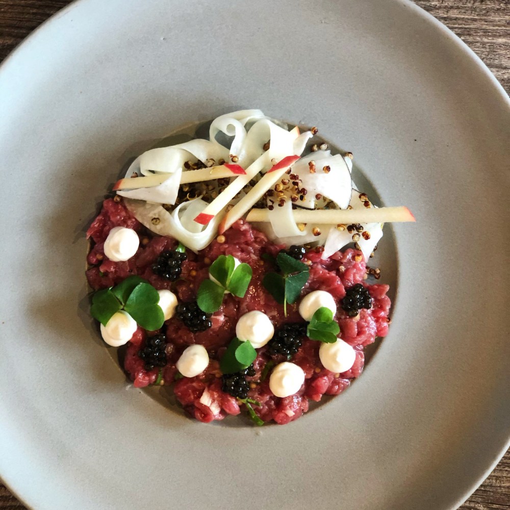 For starter we went for the Beef Tartare and Caviar which came with an Oyster on the side, and the Confit Potato, with pickled mushrooms, wild leek, summer truffle and most importantly, cheese. Both dishes were fantastic, beautifully presented and I really wanted to lick the plate clean!