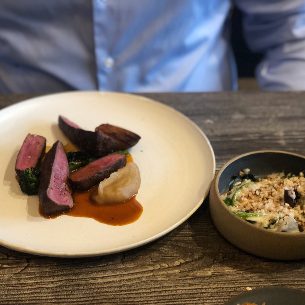 For main course we chose the Monkfish and Fennel which came with a little side of Crispy Pork and the Venison with Shallot, Tenderstem Brocolli and Sugar Snaps. Another tasty course of food, deceptively simple but full of flavour.
