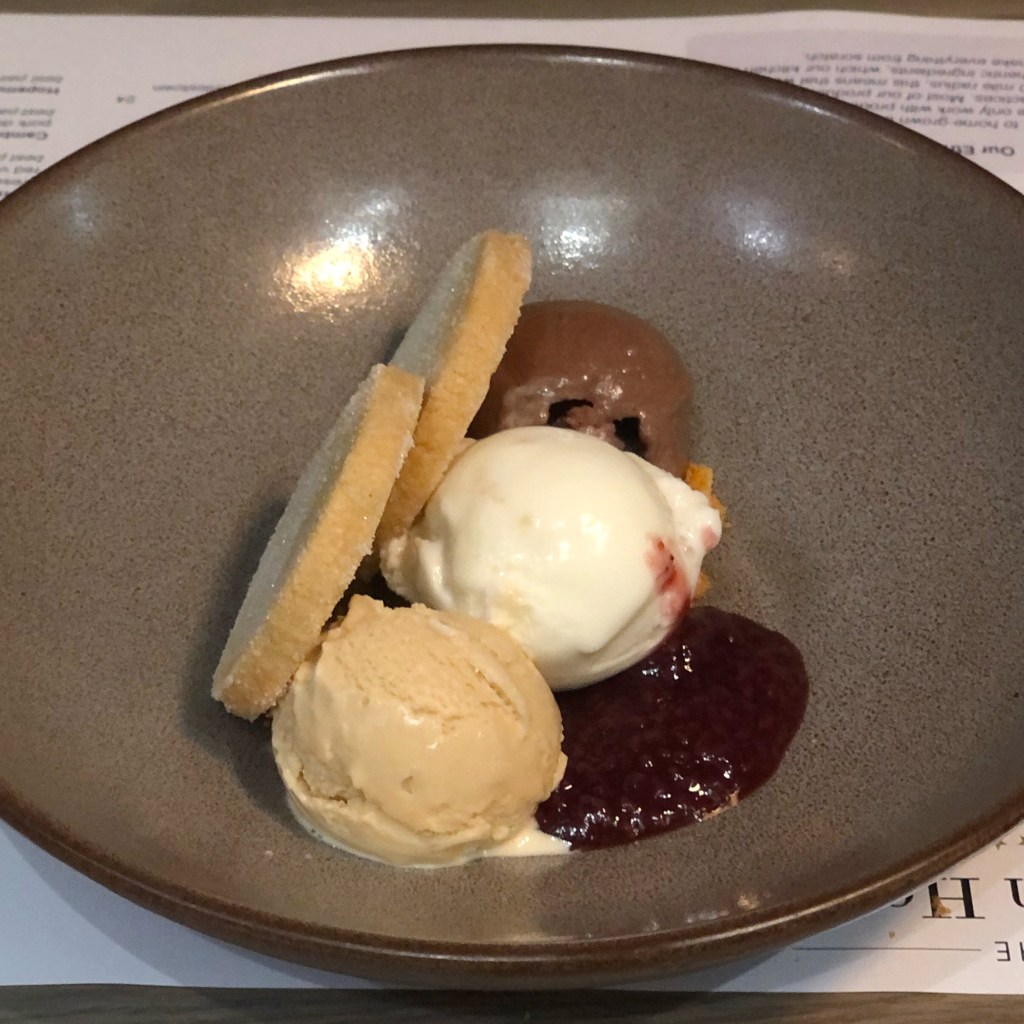 Stuart said he was keeping it ‘light’ with ice cream, but ended up with a healthy portion of Stew and Drew’s Ice Creams in Chocolate, Vanilla and Salted Caramel. And by the way, a visit to Stew and Drew‘s if you are ever in Hopeman is a must!
