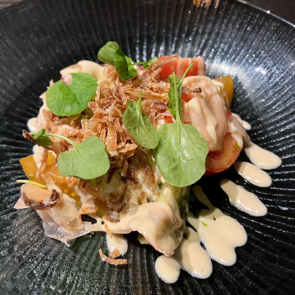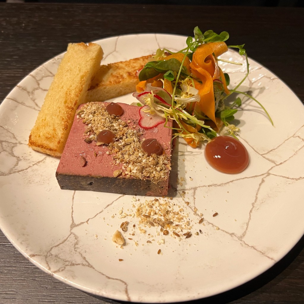 For starter I had the Tofu and Tomato Salad with Pickled Ginger and Tahini Dressing which was light, with whipped tofu and flavourful tomatoes. My dining partner had the Chicken Liver Parfait with Brioche, Hibiscus Gel, Pickled Carrots and Dukkah, which was a healthy portion of tasty parfait and the pickled carrots cutting through the richness.