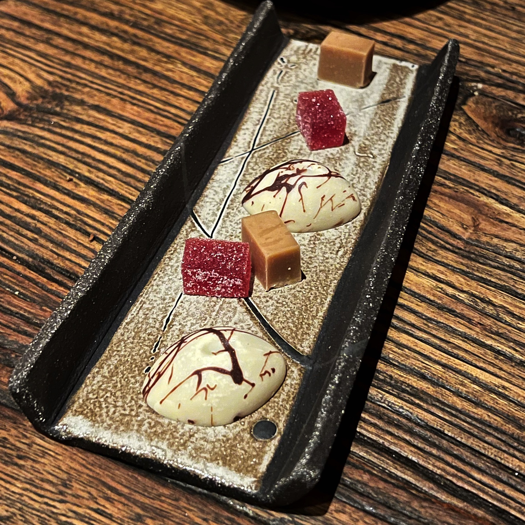 Moving onto the dessert courses, and we enjoyed a lovely palate cleansing dish of Yorkshire Rhubarb with Lemon Thyme and Yoghurt, light and fresh to lead us into the final dessert of a Caramelised Apple with Malt and Artichoke. I was apprehensive about the artichoke element as that is really not a favourite vegetable of mine, however I need not have worried as it was delicious and frankly you couldn’t really taste it. Plus you really cant go wrong with Caramelised Apples!