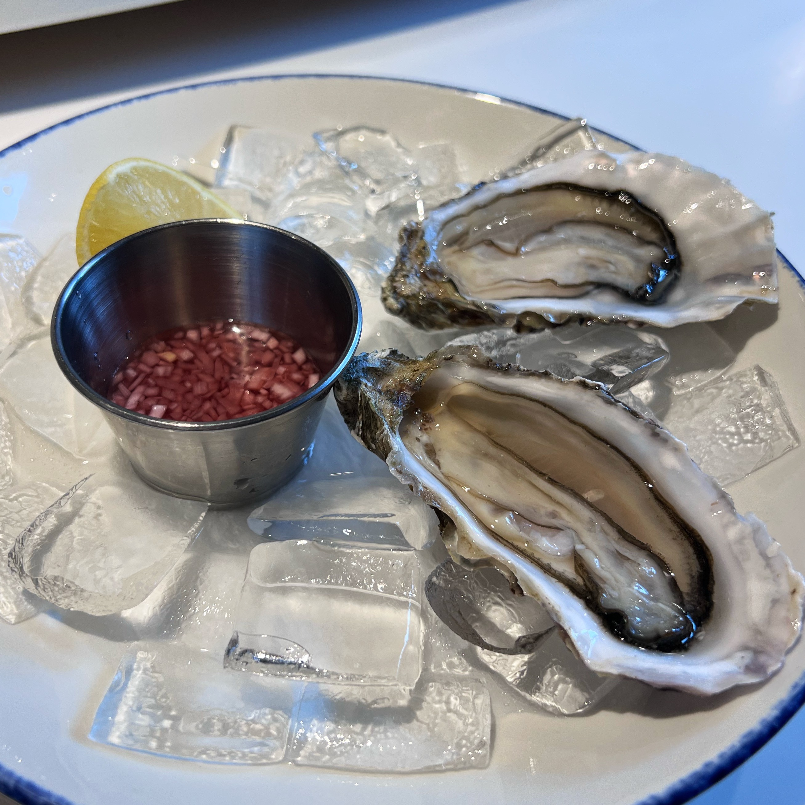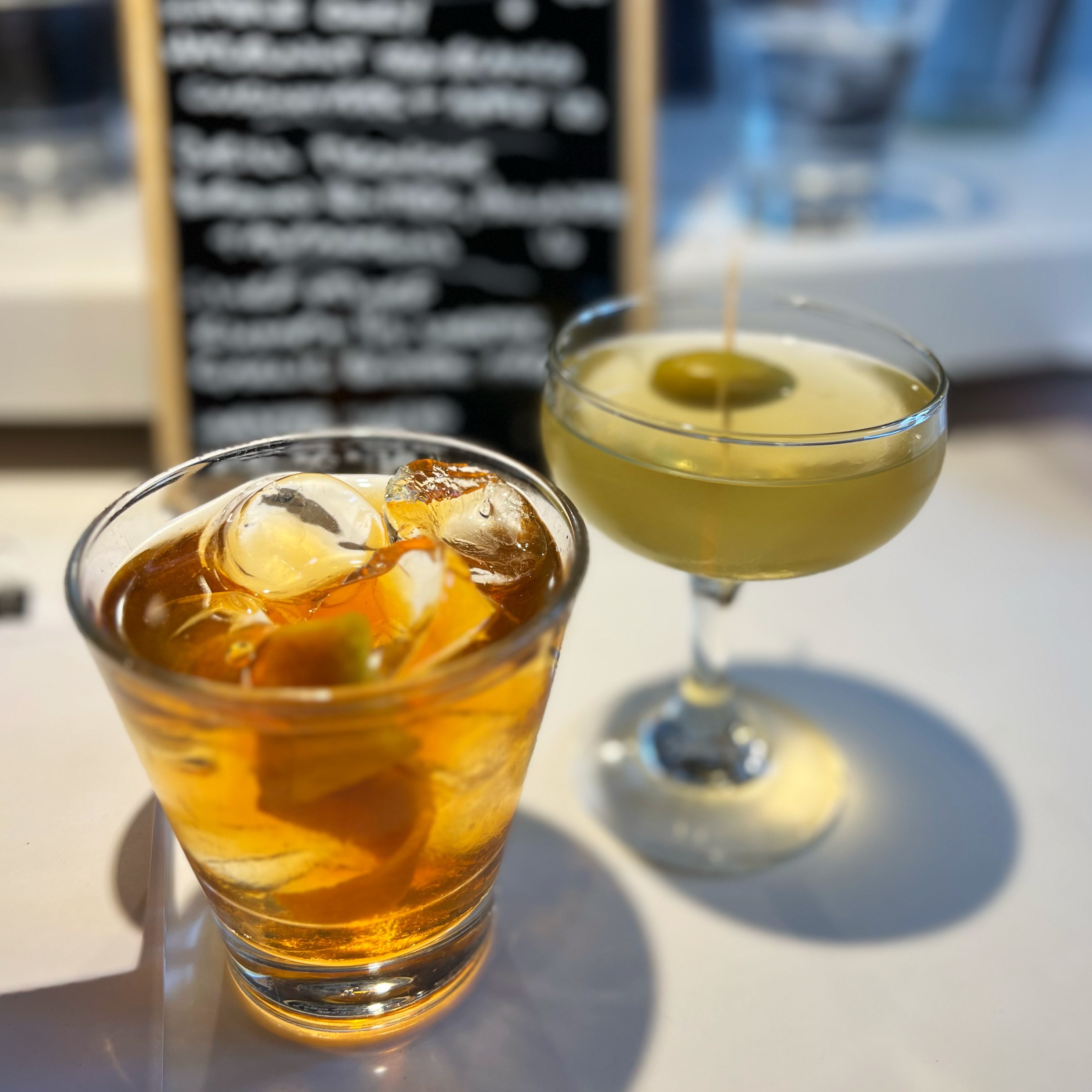 On our latest visit, it was for my birthday (well post birthday lunch – told you any excuse!). So, naturally we started off with a couple of great celebratory cocktails (an Old Fashioned for me, a Martini for him), followed by a tasty bottle of Cremant, to go with the seafood.