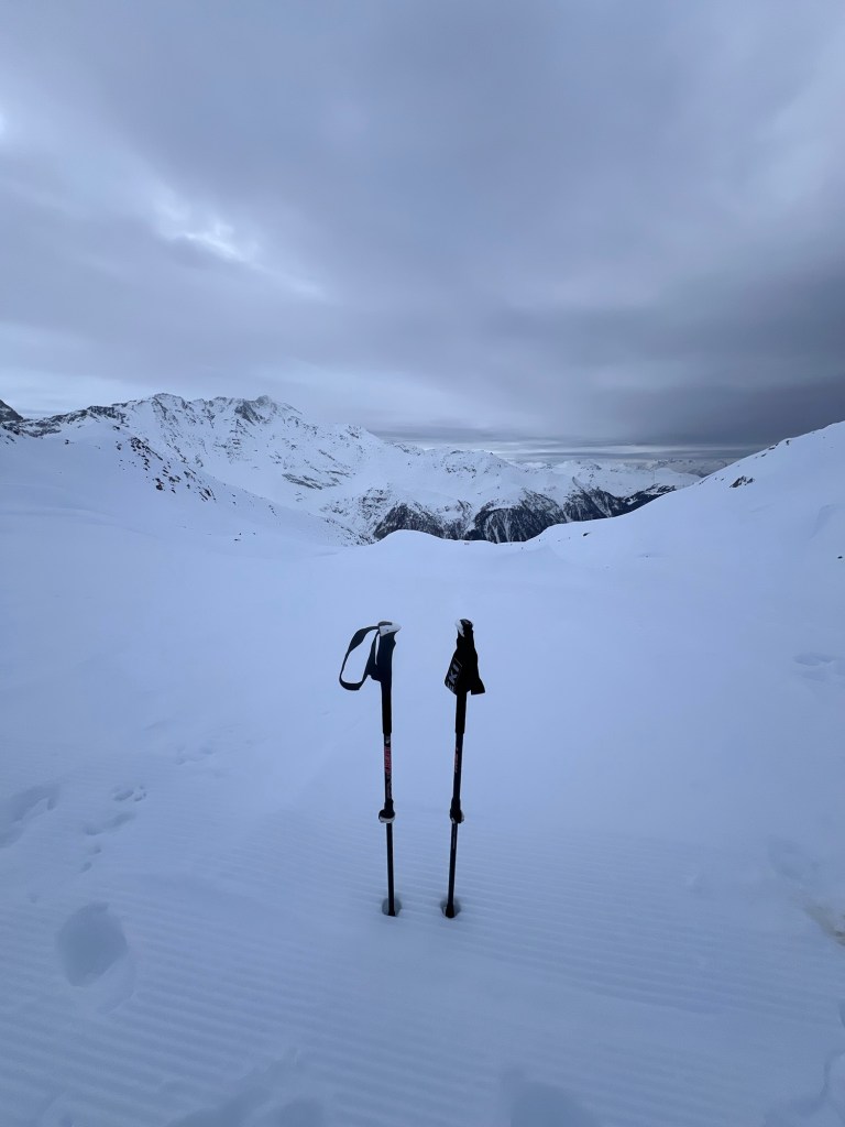 My advice is to apply simple winter walking rules, good sturdy boots, yak tracks, walking poles, a back pack with some food, water and survival bag and do let someone know where you are headed before you set off. I opted for the Col de la Chal walk, which starts in Les Arcs 1800 and you head up the transarc gondola. The walk is popular, and relatively simple, it runs in parallel to a blue run coming off the top of the mountain. You get some lovely views and at the end a welcoming hot drink at the refuge.