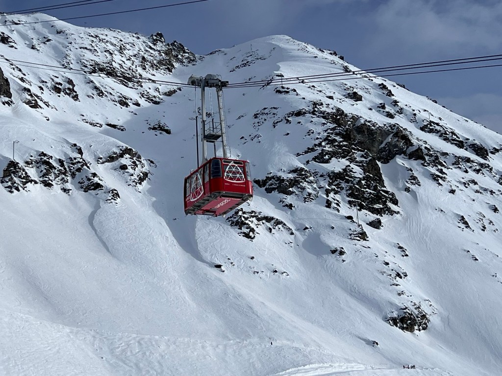 The next cable car is the Aguille Rouge Cable Car which takes you all the way to the top. There is usually a queue for the cable car, though it does hold a lot of people, it’s also popular for those on foot who want to catch a glimpse of Mont Blanc, but also the slightly more adventurous skier who wants to ski the black run from the top back to Les Arcs 2000. There is a red piste off shoot which then joins gentler blue runs for the less mad route back to the resort. I was fine on foot. It was quite windy the day we went up, so we didn’t hang around long, sadly we didn’t really see Mont Blanc as it was shrouded in cloud! It was still a cool journey to do.