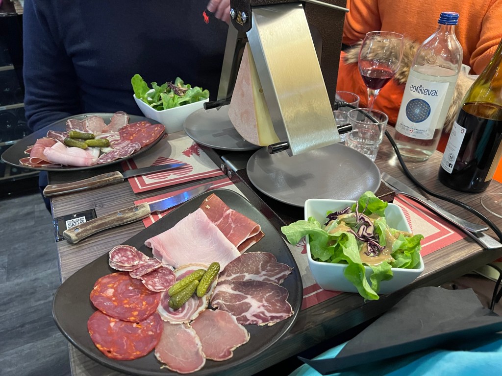 For the evenings, there are numerous places to choose from in the village. One thing you must try is raclette, with the best being at the Restaurant Le Dream Spot—so much cheese, meat, and potatoes (and that’s coming from an Irish person!). Another great spot for Savoie food is La Cabane des Neiges, where I had an excellent French onion soup and tartiflette—a tasty, hearty meal. Lucky I wasn’t skiing after! Voga Goga at our hotel was pretty good too, offering standard Savoie food and some excellent pizza, which you can also take away. The Goofy Bar had some lovely tapas-style dishes that we enjoyed while watching the rugby one evening. My only advice would be to book in advance, as many of the restaurants are small and popular, and they fill up fast (as we found out!).