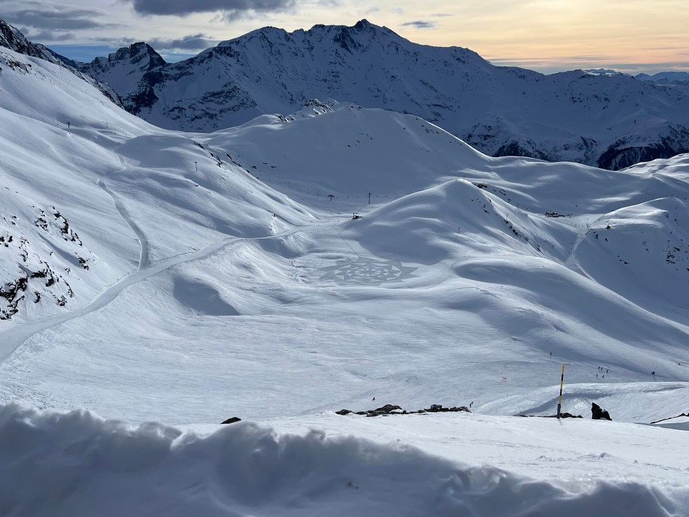 Aguille Rouge is the highest peak in the Les Arcs ski area at 3226m, and it’s worth the trip for the views of Mont Blanc and the Illuminated Murals. The way to get there is from Les Arcs 2000 using the Varet gondola. We took the bus from Les Arcs 1800, but if you are skiing in the area you can make your way there on several of the blue runs.
