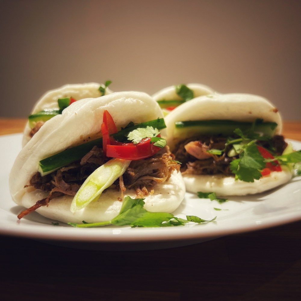 - Serve with a plate of steamed bao, along with a bowl of the pickled chillies and the sliced vegetables for your everyone to build their own buns.