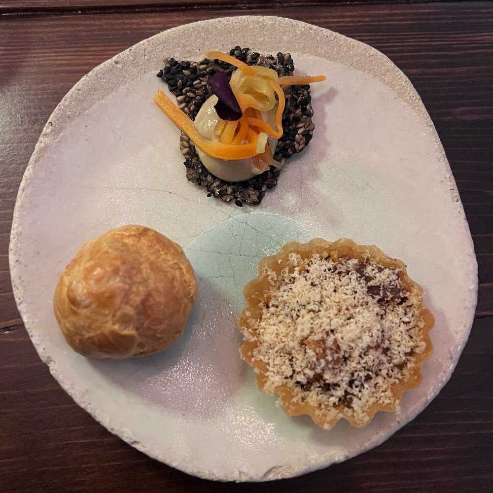 Since it was between Christmas and New Year, only the tasting menu was available which is priced at £95 per person. That constraint was good for us, as we’d planned to choose it anyway. We also chose the wine pairing (at £65 each), which was a great decision—each wine was delicious and paired perfectly with each course.
