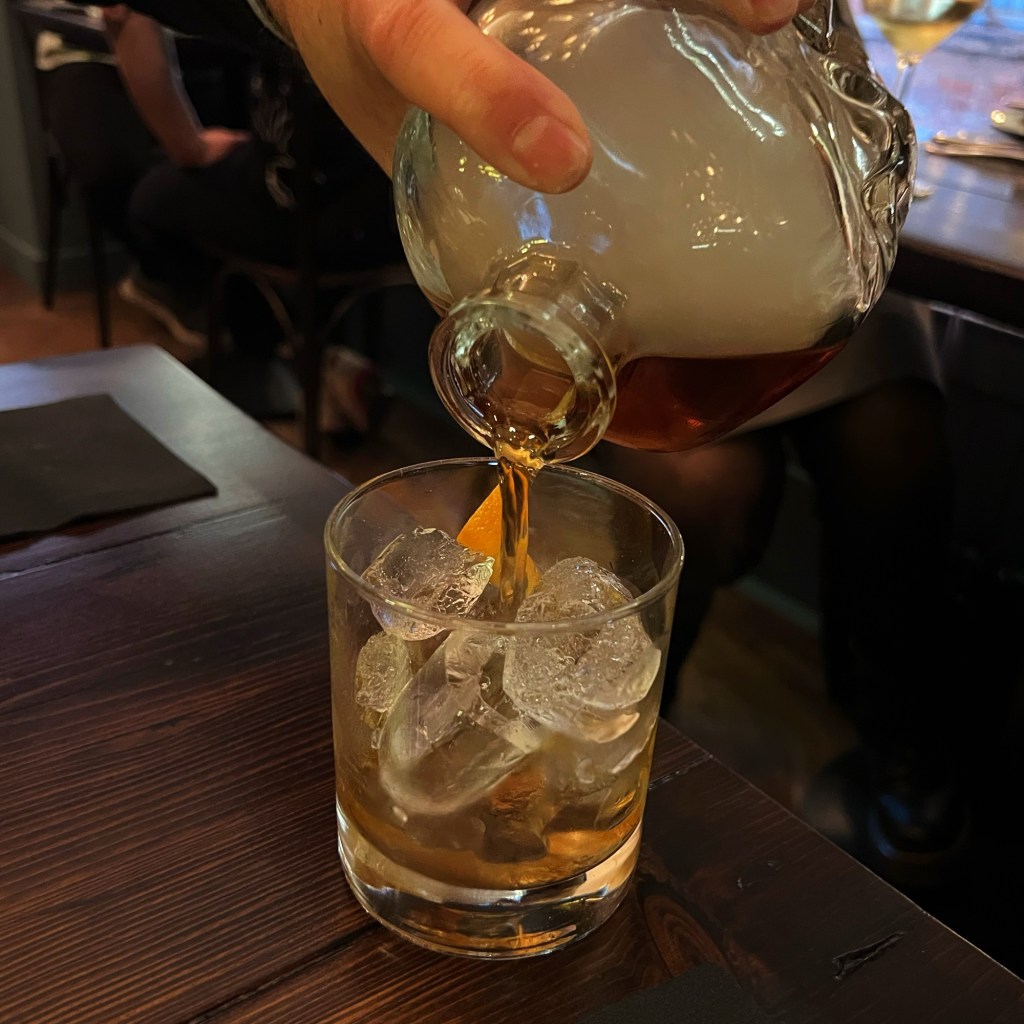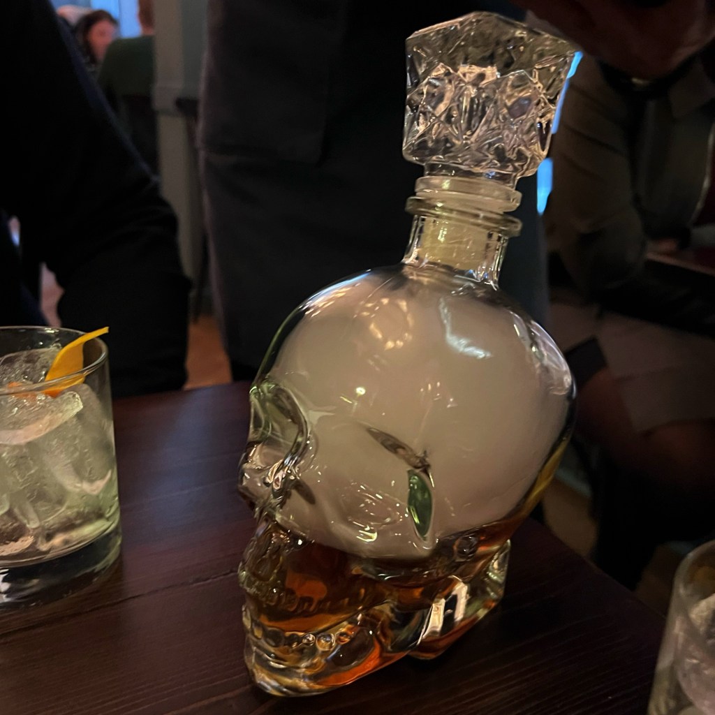 After being seated and having the menu explained to us, we ordered some cocktails, and I went for my favourite – an Old Fashioned. The cocktail arrived at the table with a bit of dramatic flare in the form of skull shaped bottle and lots of smoke, thankfully the table next to us didn’t complain as we almost smoked them out!