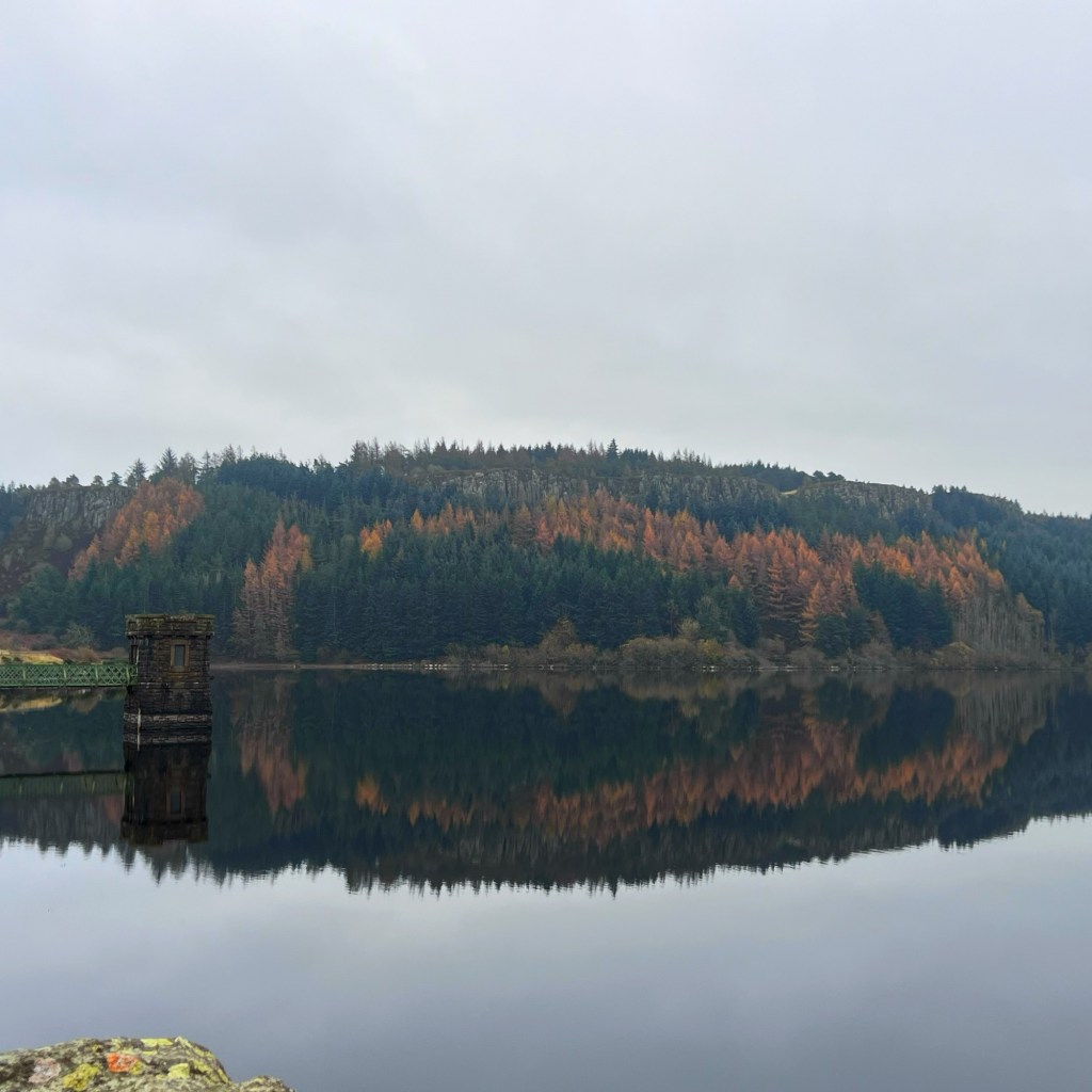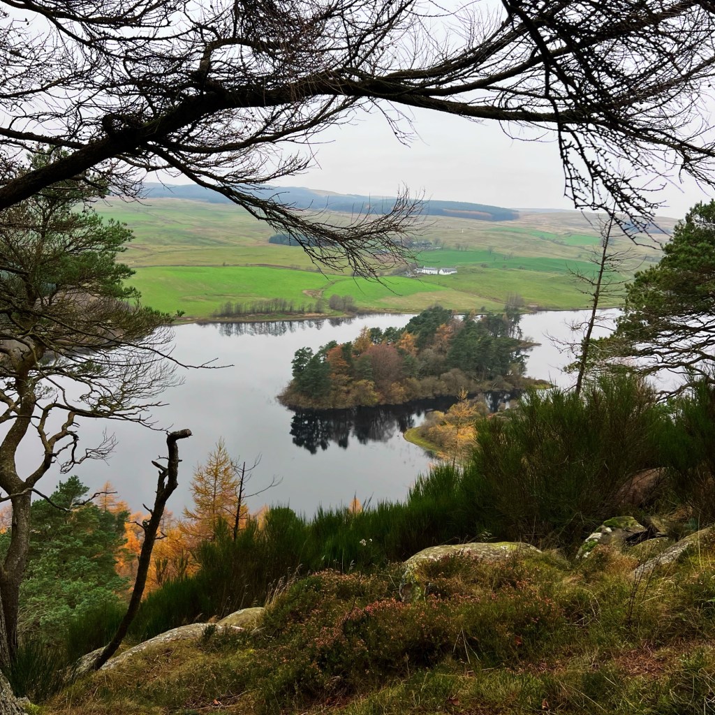 The path goes through a wooded area, and after about 15 minutes of climbing, it starts to widen and flatten out a bit. What you think is the ‘peak’ isn’t. Keep walking for about another 5 minutes and you will reach a trig point and a great viewpoint over the reservoir. The stunning panoramic view of the reservoir is the highlight of the walk; the calm and reflective waters mirror the surrounding trees and hills, creating a picture-perfect scene, even on the dreichest of days, when it becomes moody.