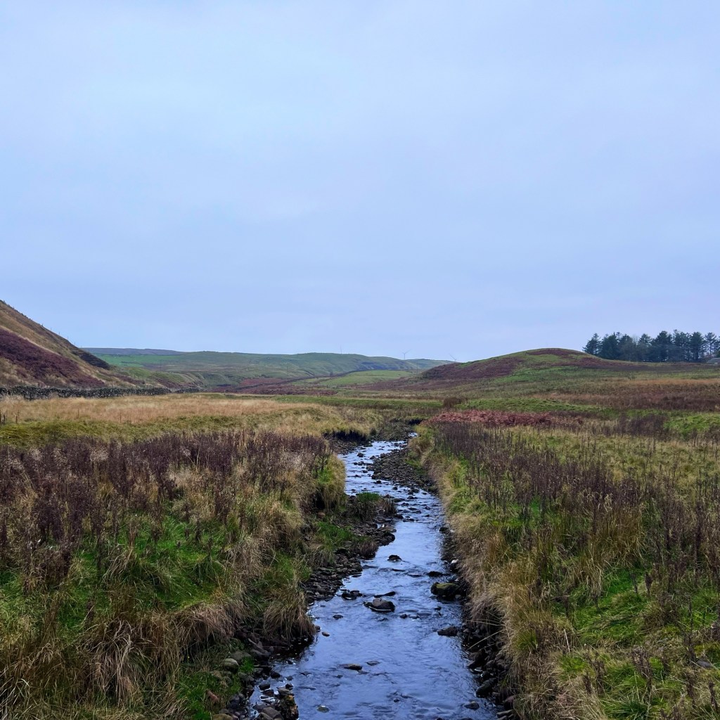 The rest of the walk follows the water’s edge, with views up to the cliffs you have just walked along. You pass little beachy areas where people have had BBQs or fires in the summer, and some parts of the path are replaced by boardwalk. As you approach the end of the reservoir, you come to a relatively newly built bridge. Cross this and you join the road again. You can continue around the reservoir, but we came off at the bridge and walked up the road back to the car, crossing over the Bannock Burn.