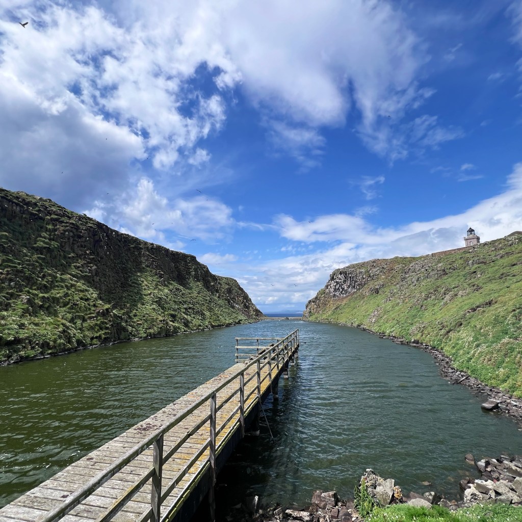Also, you can find some small houses where the lighthouse operators once lived, a little community, where staff and researchers from NatureScot now live to protect and watch the wildlife on the island.