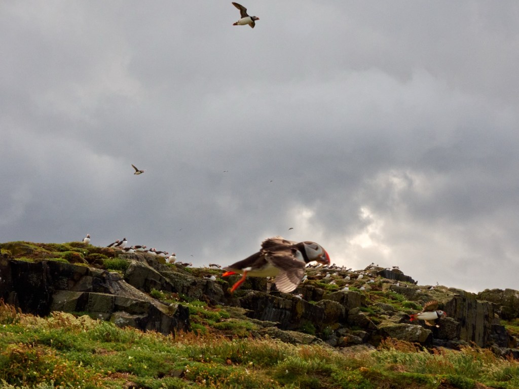 There can be up to around 200,000 puffins and pufflings on the island at the peak, so in June you are definitely likely to see them, and very closely as well. Be careful, they love to dive and are very quick and sprightly, and in one instance I thought they were going to fly straight into my head!
